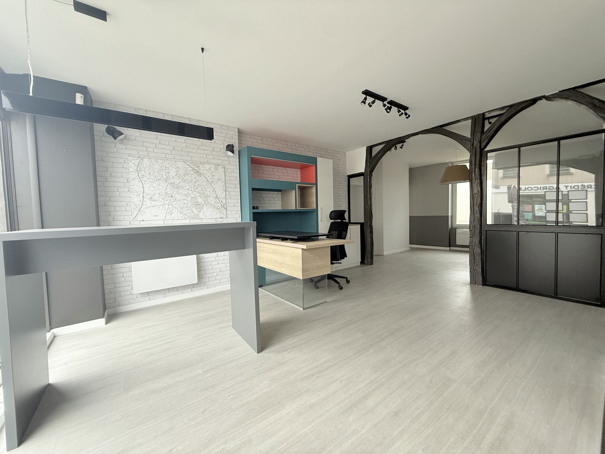 Bourges centre, local professionnel ou commercial, sis au 1er étage d'une petite copropriété proche de la place Gordaine, Comprenant une entrée, accueil, 3 bureaux, cuisine, réserve, wc, sde. Idéal pour profession libérale ou bureau commercial. loyer mensuel : 750 + Charges Plus d'informations et visite sur demande a l'agence.