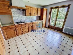 Maison individuelle de type 4, composée d'une entrée, un salon lumineux avec une cheminée, une cuisine indépendante, un couloir desservant trois chambres, une salle de bains et un WC séparé. Le bien dispose également d'un garage en sous-sol avec deux caves.