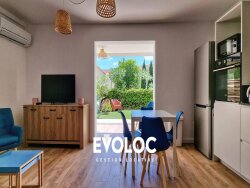 LOCATION T3 MEUBLE - DISPONIBILITE IMMEDIATE Très joli appartement entièrement rénové de type T3 meublé de 68 m² avec jardin et terrasse situé au rez-de-chaussée d'une résidence sécurisée. Cet appartement se compose d'une entrée, d'un lumineux et agréable séjour avec cuisine US équipée, de deux grandes chambres avec placards et climatisation réversible, une salle d?eau et un WC séparé. Une place de parking en extérieur. DOSSIER A ENVOYER A L'ADRESSE SUIVANTE : GESTION@EVOLOC-IMMOBILIER.FR - CONTACT : 07 44 95 14 43 Modalité de chauffage : Climatisation réversible / Modalité de production d'eau chaude : Cumulus / DPE : B (100) / GES : B (3) Loyer : 1100?/mois charges comprises. Les charges d'un montant de 60 ? correspondent à une provision pour l'eau, les charges de copropriété et la taxe des ordures ménagères est à régler une fois par an à réception de l?avis foncier. Complément de loyer : 65? Zone soumise à l'encadrement des loyers. Montant du loyer majoré : 976.80? Honoraires de location : 858? dont 198.6? pour la réalisation de l'état des lieux. Dépôt de garantie : 2080??. Les informations sur les risques auxquels ce bien est exposé sont disponibles sur le site Géorisques : www.georisques.gouv.fr Votre conseillé EVOC : Janelle LEPINE +33422910030