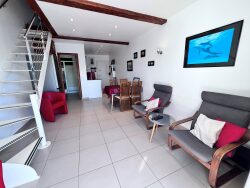 - d'une entrée (porte blindée), - d'une cuisine équipée moderne et très fonctionnelle, - d'un séjour lumineux avec prise fibre internet, - d'un balcon avec barbecue et store banne électrique, - d'une salle d'eau avec WC et fenêtre, à l'étage, deux chambres climatisées, avec lit 160 et Velux (volet roulant électrique et occultant). Vous profiterez du calme d'un environnement préservé tout en étant à proximité immédiate des commerces, des transports et de toutes les commodités.