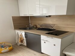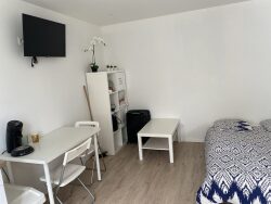 Coin cuisine dispose d'un évier, 2 plaques de cuisson et des équipements ci-dessous : - Équipements de base - Équipements de cuisine de base - Vaisselle et couverts Le coin salon / séjour / chambre très lumineux dispose de rangements, d'un coin repas avec une table et une chaise ainsi que d'un lit en 140x190 avec literie complète.