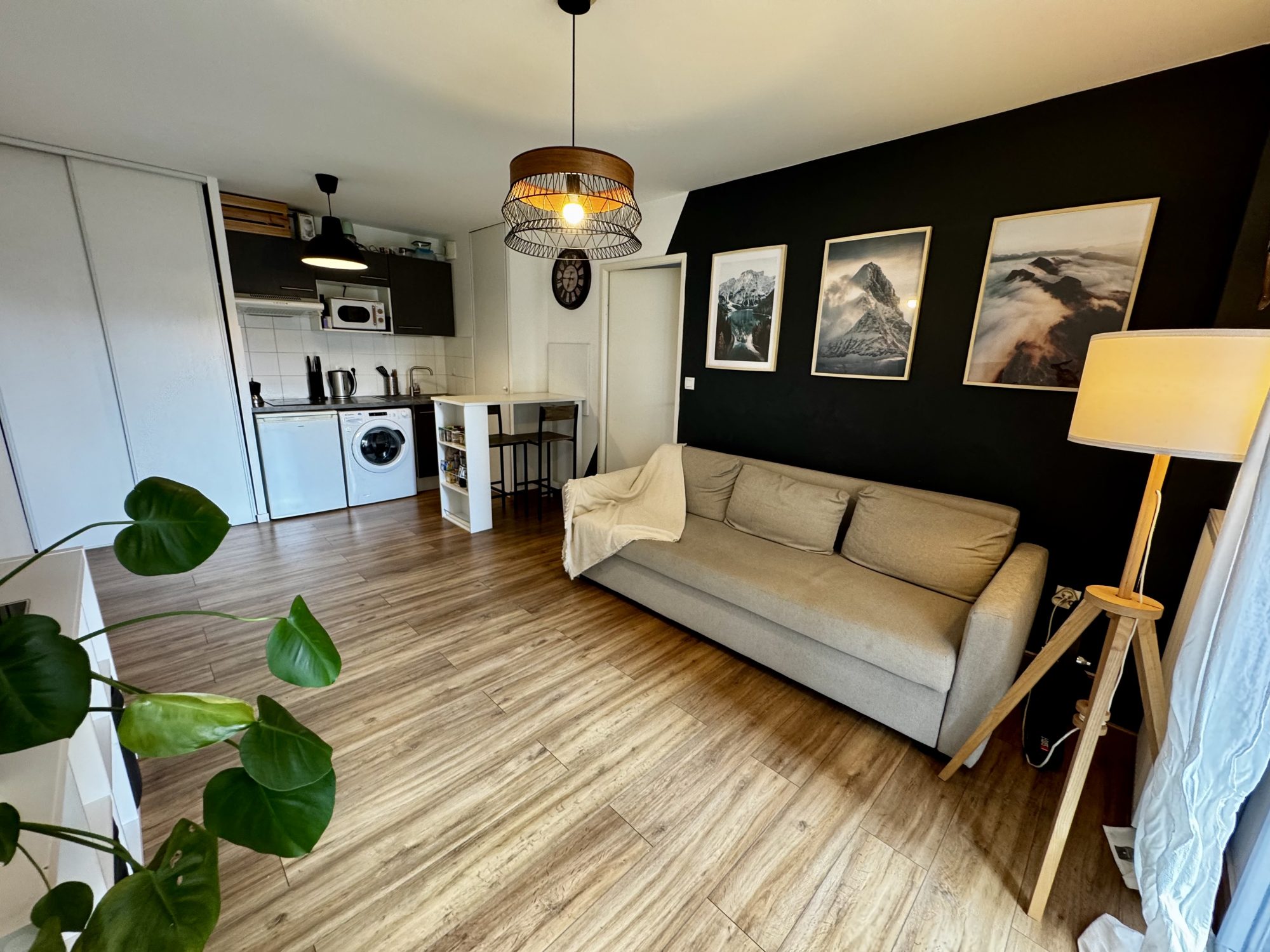 L'appartement se compose d'une entrée avec placard, d'une cuisine aménagée ouverte, d'un séjour donnant sur un balcon, de deux chambres avec placard, d'une salle de bain et d'un WC indépendant.