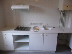 A louer Saint Affrique, Jardin Public, appartement de type 4 en 2ème étage, 88 m2 habitables, salon-séjour donnant sur cuisine semi-équipée, dégagement distribuant 3 chambres avec placards, salle d'eau et w-c. Parking. Disponible le 08/07/2026. hubert-peyrottes-immobilier.fr 05 65 99 19 19