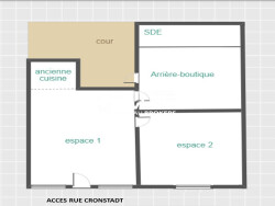 Surface totale : 42 m2 2 accès : accès sur rue et via la cour d'immeuble 2 espaces boutique 1 espace arrière-boutique 1 salle d'eau avec WC et douche Linéaire de vitrine 4-5ml cave en sous-sol