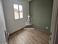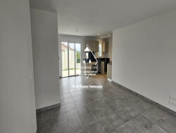 Elle est composée de : - Un grand espace de vie de 43 m² avec cuisine équipée - Trois chambres de 11m² à 10 m² - Une salle d'eau - Un WC séparé - Un cellier - Un garage de 17 m² avec porte automatique