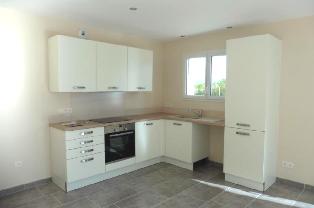 Elle se compose au rez-de-chaussée d'une belle entrée, d'un spacieux salon-séjour ouvrant sur une terrasse, d'une cuisine indépendante, entièrement meublée et équipée (plaque, four, hotte, lave-vaisselle), d'un bureau et d'un WC indépendant.