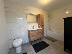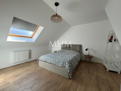 Maison spacieuse rénovée à neuf 115m2 habitables (141 m2 au sol) avec jardin. Cette maison se compose d'un hall d'entrée desservant une chambre/bureau, un wc individuel, un vestiaire, une salle à manger/salon/cuisine équipée ouverte. Une buanderie et une salle de bain complètent le rez de chaussée. A l'étage, trois chambres sont une avec sa salle d'eau. Stationnement facile.
