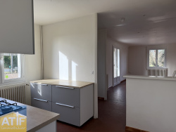 ATIF immobilier, Claudy CARTON vous propose à la location cette maison plain-pied de 90 m2 habitable. Elle offre un séjour, une cuisine semi-équipée, trois chambres, une salle d'eau, un w-c et un garage. Chauffage central alimenté par une pompe à chaleur. Terrain clos d'environ 1200 m2. Disponible immédiatement. Loyer : 800 EUR Charges mensuelles: 30 EUR (entretien de la chaudière + taxe ordures ménagères) Frais d'agence à la charge du locataire 400 EUR