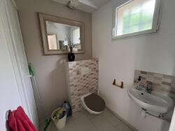 À l'étage, se trouvent une grande pièce ouverte sur le palier (pouvant être aménagée en chambre d'appoint ou en bureau), une chambre, une salle d'eau et un WC.