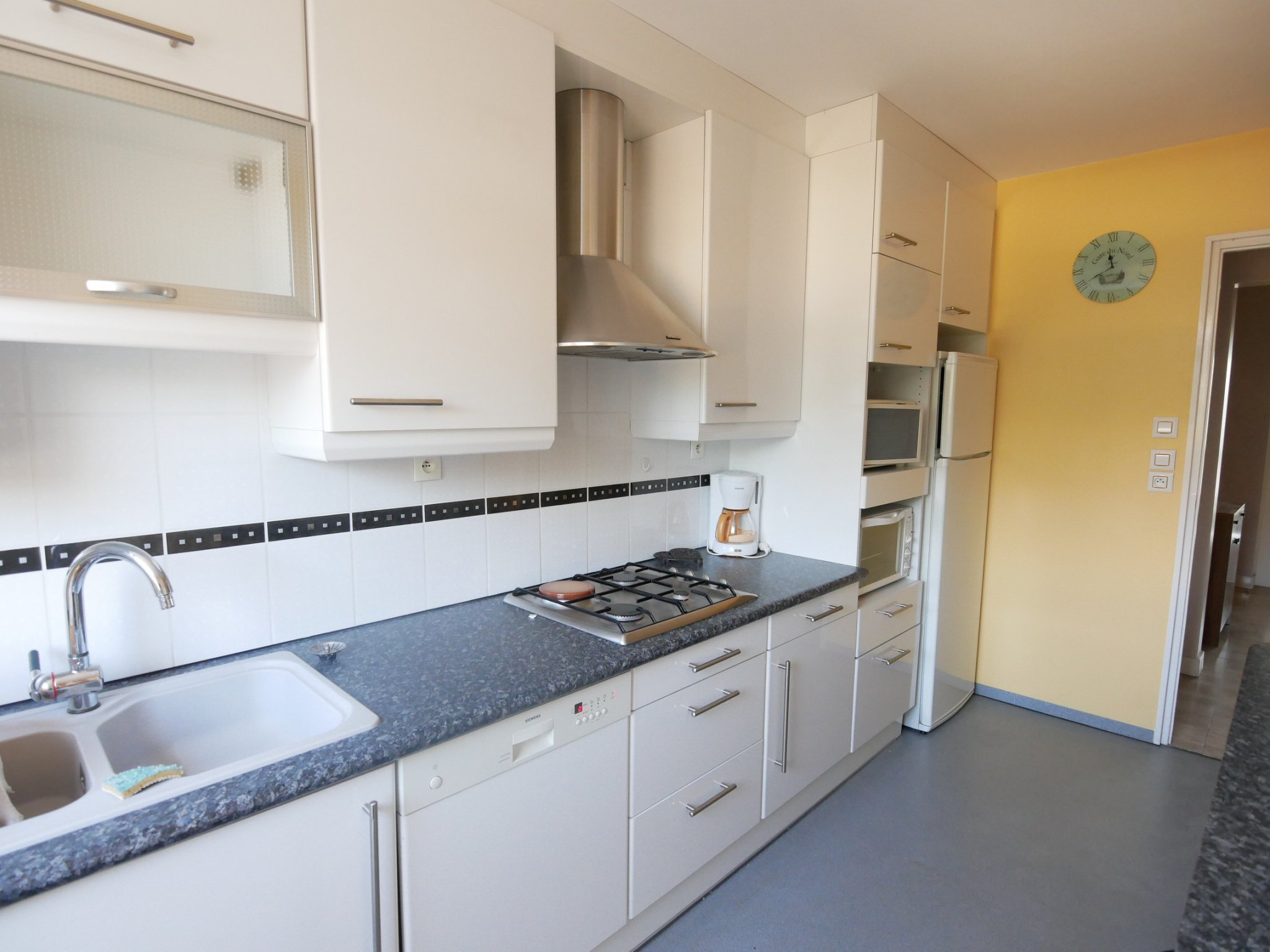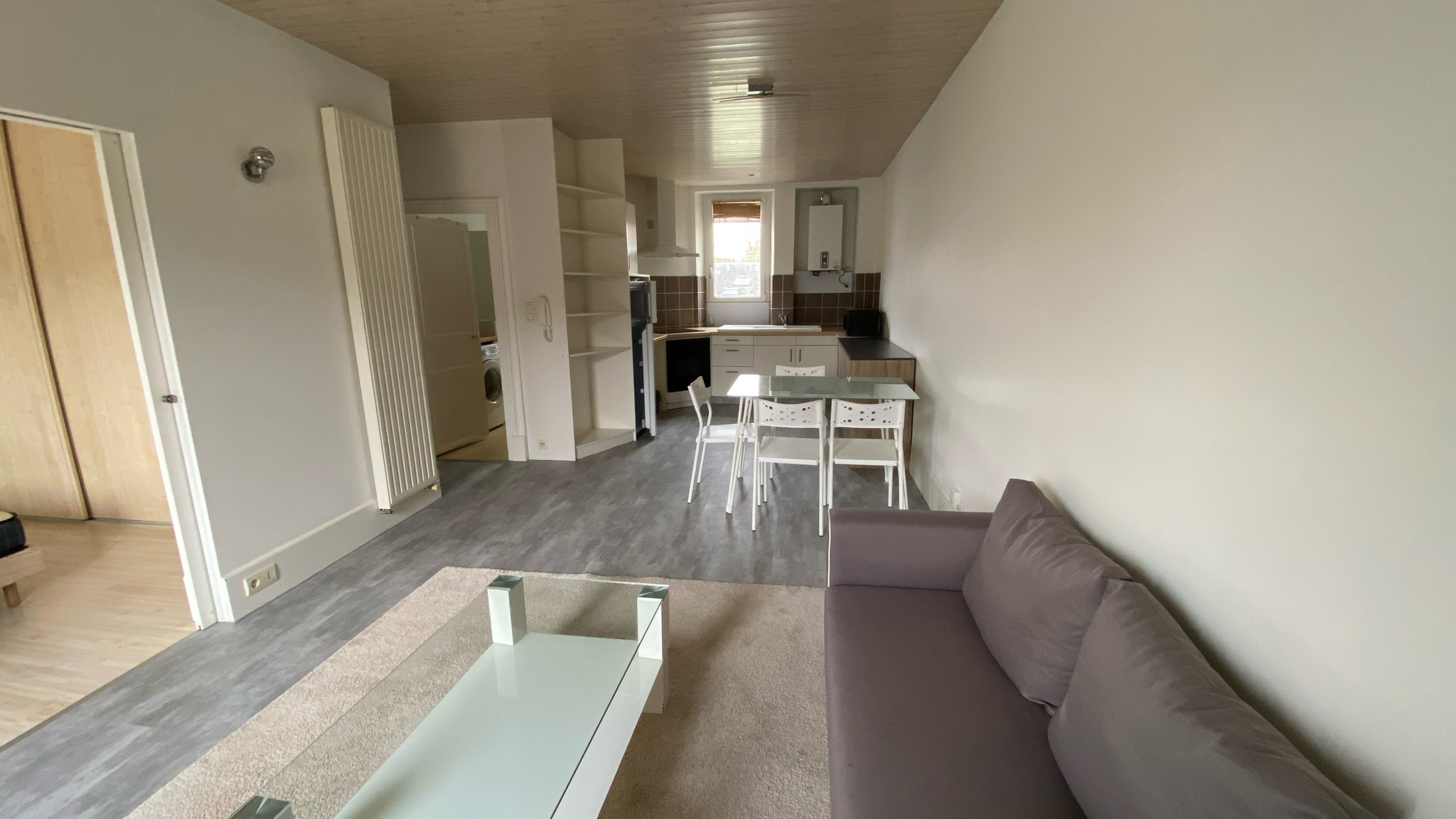 L'appartement se compose de : - Une cuisine aménagée et équipée, ouverte sur un séjour lumineux - Deux chambres - Une salle d'eau équipée d'une machine à laver - Des rangements pratiques dans le couloir - WC indépendant