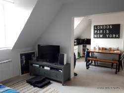 Village au Nord de SENLIS, dans propriété divisée en appartements, au 1er étage, grand studio de 34 m2, offr. : double pièce de vie carrelée avec coin cuisine aménagée, coin nuit, salle d'eau avec wc. Cave. Parking résidents et jardin commun. Disponible de suite. Contact IMMO DES 3 FORETS Mme BECQUET 07.67.42.08.88