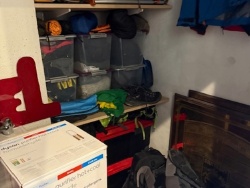 Il comprend une grande pièce, un grand placard/cellier et un second grand placard/cellier avec toilettes.