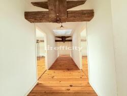 À l'étage : un appartement de 95 m², à l'ambiance chaleureuse, avec parquet en chêne massif, poutres apparentes et un DPE en B, gage de confort et d'efficacité énergétique.