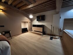 Bien atypique avec immense hauteur sous plafond, mur en pierres et plafond en bois et ses moulures d'époques. Ce loft actuellement loué en tant que Love Room de haut standard, entièrement rénové et vendu totalement meublé. L'entrée desservira les WC séparés, un grand placard, la cuisine spacieuse et très lumineuse et une superbe salle de bain avec double douche, double vasque. A l'étage, une grande chambre, un coin canapé et son jacuzzi en ravira plus d'un !