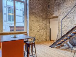 Bien atypique avec immense hauteur sous plafond, mur en pierres et plafond en bois et ses moulures d'époques. Ce loft actuellement loué en tant que Love Room de haut standard, entièrement rénové et vendu totalement meublé. L'entrée desservira les WC séparés, un grand placard, la cuisine spacieuse et très lumineuse et une superbe salle de bain avec double douche, double vasque. A l'étage, une grande chambre, un coin canapé et son jacuzzi en ravira plus d'un !