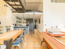 A proximité de la place André Meunier, en seconde ligne et à l'abri des regards, ce loft contemporain se dévoile derrière une élégante façade en pierre et offre des prestations de qualité. L'accès se fait par un portail électrique menant à un vaste garage privatif de 65 m². Dès l'entrée, des rangements intégrés accompagnent un grand cellier-buanderie, avant de découvrir une cuisine entièrement équipée ouverte sur le salon-séjour, sublimé par une belle double hauteur sous plafond. A l'extérieur, un patio de 37 m² orienté Sud Ouest prolonge naturellement les espaces de vie et accueille une piscine chauffée et sécurisée de 2 x 4 m ainsi qu'un agréable espace terrasse, propice aux moments de détente. Un couloir baigné de lumière, aménagé en espace bureau, mène à une suite parentale confortable avec dressing et salle d'eau. A l'étage, deux chambres et une salle d'eau prennent place d'un côté, tandis qu'une passerelle dessert un salon TV puis une chambre plus intimiste, disposant de son dressing et de sa salle de bains. Un lieu de vie confidentiel et fonctionnel, alliant volumes, confort et calme, à proximité immédiate de la gare et des commodités. Entièrement refait à neuf en 2020 avec garanties décennales. CLASSE ÉNERGIE : A / CLASSE CLIMAT : A. Montant moyen estimé des dépenses annuelles d'énergie pour un usage standard, établi à partir des prix moyens de l'énergie indexés sur les années 2023: entre 760 euros et 1040 euros. Charline Driffort (EI) Agent Commercial : 06 79 02 11 09 / Numéro RSAC : 837 551 266 Bordeaux. Copropriété de 18 lots - dont 6 lots habitation. (Pas de procédure en cours). Charges annuelles : 1500 euros. Charline Driffort (EI) Agent Commercial - Numéro RSAC : - .