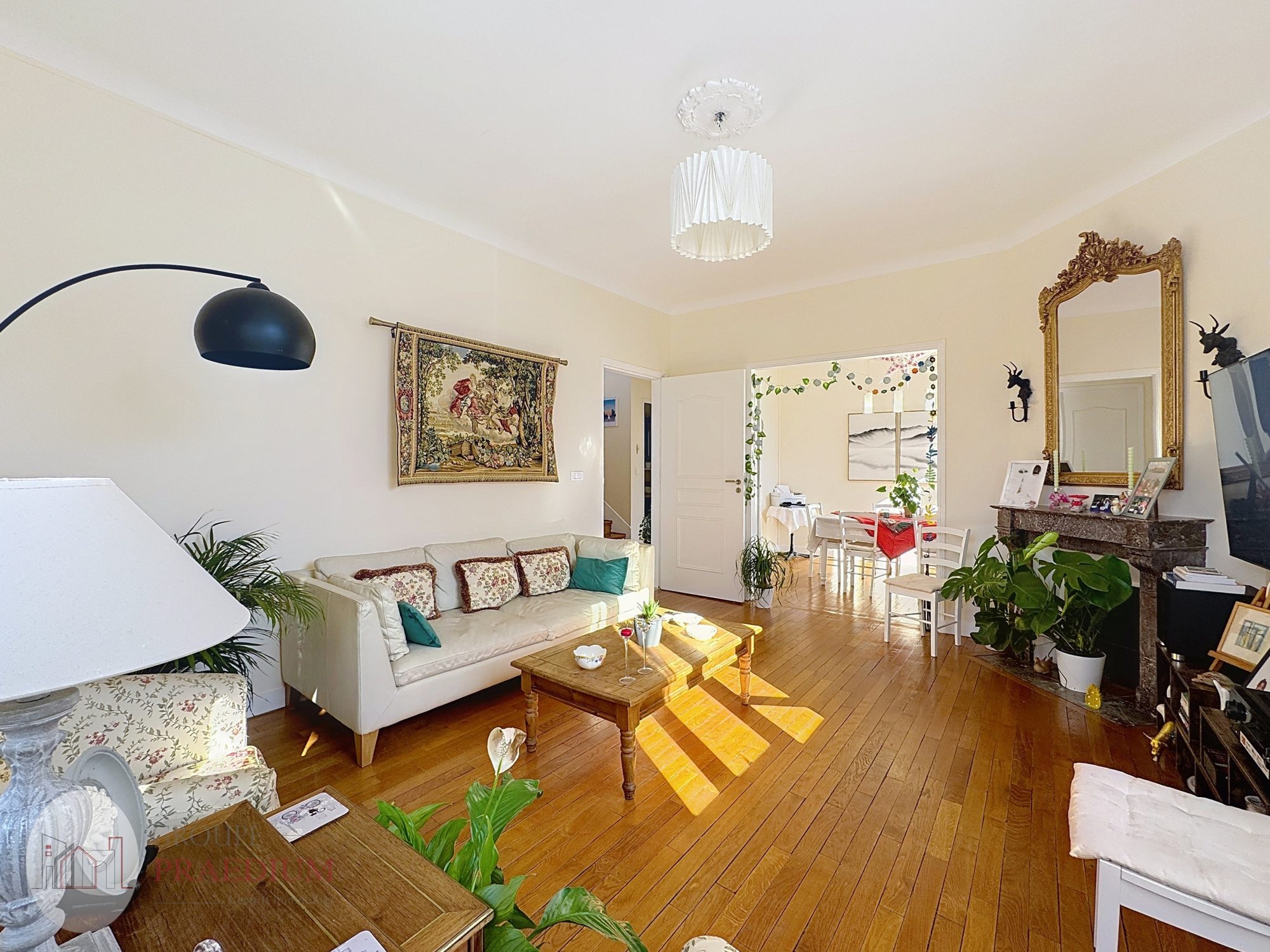 La cuisine américaine s'ouvre sur une salle à manger conviviale et un séjour spacieux, parfaits pour des moments en famille ou entre amis.