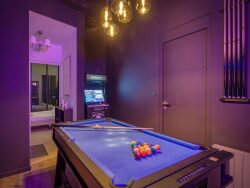 Le hall d'entrée donnera accès à un double séjour actuellement utilisé en tanque que double chambre, une salle de jeux avec billard et borne d'arcade, une chambre avec salle de bain douche, lavabo et WC, une seconde salle de bain avec baignoire, lavabo et WC, ainsi que la pièce maîtresse de la maison ! Une piscine intérieur sublime et sa cuisine, donnant sur l'extérieur avec sa terrasse et sa table à manger, le jardin avec terrain de pétanque, 2 garages et un espace pour rentrer un gros véhicule si besoin.