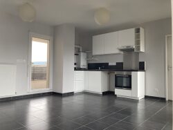 SUR LA COMMUNE D'AMBERIEU EN BUGEY, proche gare. Logement T3 situé au 2ème étage d'une copropriété récente. D'une surface de 60 m² il se compose d'une pièce de vie donnant sur un grand balcon, deux chambres, une salle de bain, un WC. Un emplacement de stationnement extérieur et un garage. Chauffage individuel gaz. DPE C. Loyer 700 + charges 100 . Dépôt de garantie : 700 / Frais de bail : 660 Disponible de suite