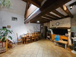 CHARMANTE LONGERE A FINIR DE RENOVER COMPOSEE D'UNE PIECE DE VIE AVEC CHEMINEE, MEZZANINE, SDE, CHAMBRE, BUANDERIE ET CHAUFFERIE. A l'ETAGE : 2 CHAMBRES, BUREAU. BELLE FACADE EN PIERRES. TRES BELLE CAVE VOUTEE POUR RECEVOIR VOS AMIS + CAVERON POUR VOS BOUTEILLES.