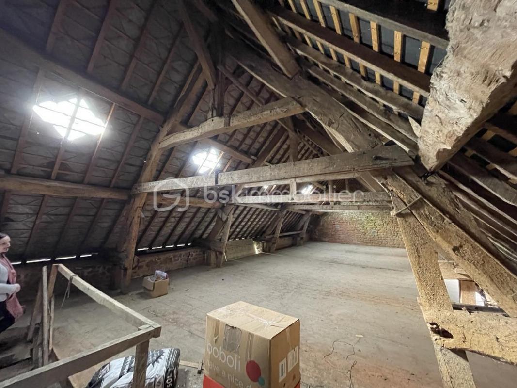Une propriété comprenant une grande bâtisse en pierres, à rénover, d'environ 180 m² au sol - 7 ml par 25 ml : murs en pierres, charpente chêne, grands volumes à aménager,