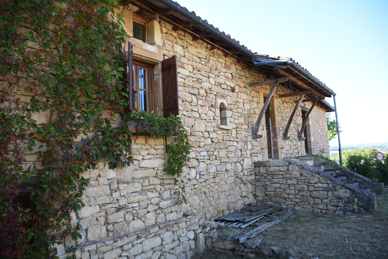 Beaucoup de caractère pour cette petite longère. en pierres sèches. Elle vous séduira de par sa rénovation basique qui a su conserver une magnifique poutraison d'origine sauvegardant ainsi son caractère et son cachet d'antan.