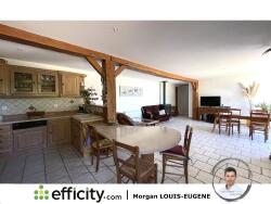 - Une pièce de vie (48 m²) ouverte sur la cuisine aménagée et équipée. Vous y trouverez l'accès à l'extérieur et à la deuxième partie de la maison.
