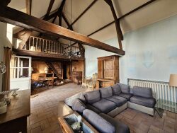 Au rdc: une entrée, un grand séjour avec mezzanine, une cuisine, une chambre, une salle de bains, un bureau, un cellier, u wc. A l'étage, trois chambres et salle d'eau. Cave, jardin dépendances. Une grange non attenante complète ce bien.