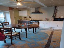 Cette longère au calme comprend : - Au rez-de-chaussée : cuisine, séjour/salon avec cheminée, pièce à aménager, salle de bains, WC. - A l'étage : deux chambres, dégagement, salle d'eau, WC.
