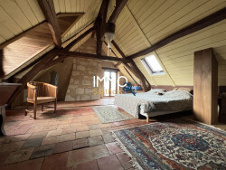 Rez-de-chaussée : Cuisine, Salon, Chambre 1, Chambre 2, Couloir, Salle de bain avec WC, Chambre 3 Étage : Mezzanine, Chambre 4, Dressing, Pièce, Pièce 2 (en travaux) Extérieurs et dépendances : Préau, Deux bûchers, Buanderie, Atelier, Grenier, Garage, Sert (dépendance annexe), Trois caves, Puits, Bergerie, Abri pour animaux.