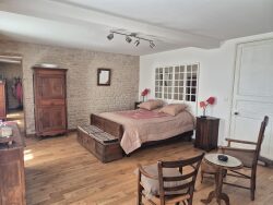 Découvrez cette magnifique maison de campagne partiellement meublée, rénovée avec goût en 2014, offrant une surface habitable de 362 m². Nichée sur un terrain de 1418 m², cette propriété allie charme rustique et confort moderne. Au rez-de-chaussée, vous serez séduit par le vaste séjour de 56 m², baigné de lumière naturelle grâce aux ouvertures en bois/PVC. La cuisine aménagée et équipée, de type coin cuisine, est un véritable espace convivial pour les repas en famille ou entre amis. Trois chambres spacieuses, dont une suite parentale avec salle d'eau privative, complètent ce niveau. À l'étage, vous trouverez deux autres chambres, une salle d'eau et un WC indépendant, offrant intimité et confort. La maison dispose également d'une cave de 21 m² pour ranger vos affaires. L'extérieur est tout aussi enchanteur avec un jardin de 900 m², parfait pour les journées ensoleillées. Profitez de la piscine de 8x4 m avec son local technique, idéale pour se rafraîchir pendant les chaudes journées d'été. Quatre places de stationnement extérieures sont également disponibles. Cette maison, en excellent état intérieur, est chauffée individuellement et dispose d'un assainissement conforme. La vue sur le jardin et la terrasse ajoute une touche de sérénité à votre quotidien. Éligible à la fibre, cette propriété est idéale pour ceux qui recherchent un cadre de vie paisible tout en restant connectés. À proximité, vous trouverez une crèche à 10 minutes en voiture, une maternelle et une école élémentaire à 5 minutes en voiture. Pour vos courses quotidiennes, un magasin d'alimentation générale est accessible en 10 minutes en voiture. Plusieurs restaurants sont également disponibles à 10 minutes en voiture. Un médecin généraliste est à 10 minutes en voiture, et un hôpital est accessible en 12 minutes en voiture.