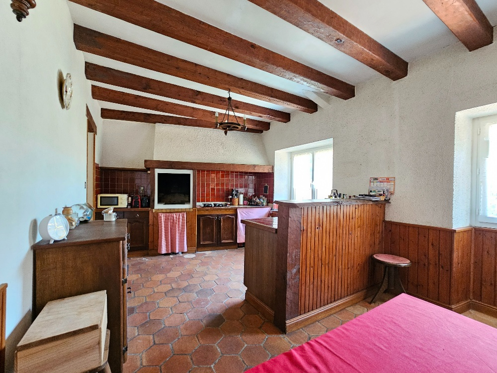 ...Comprenant au rez-de-chaussée : Entrée - cuisine de 24 m² avec cuisinière bois- salon de 13...