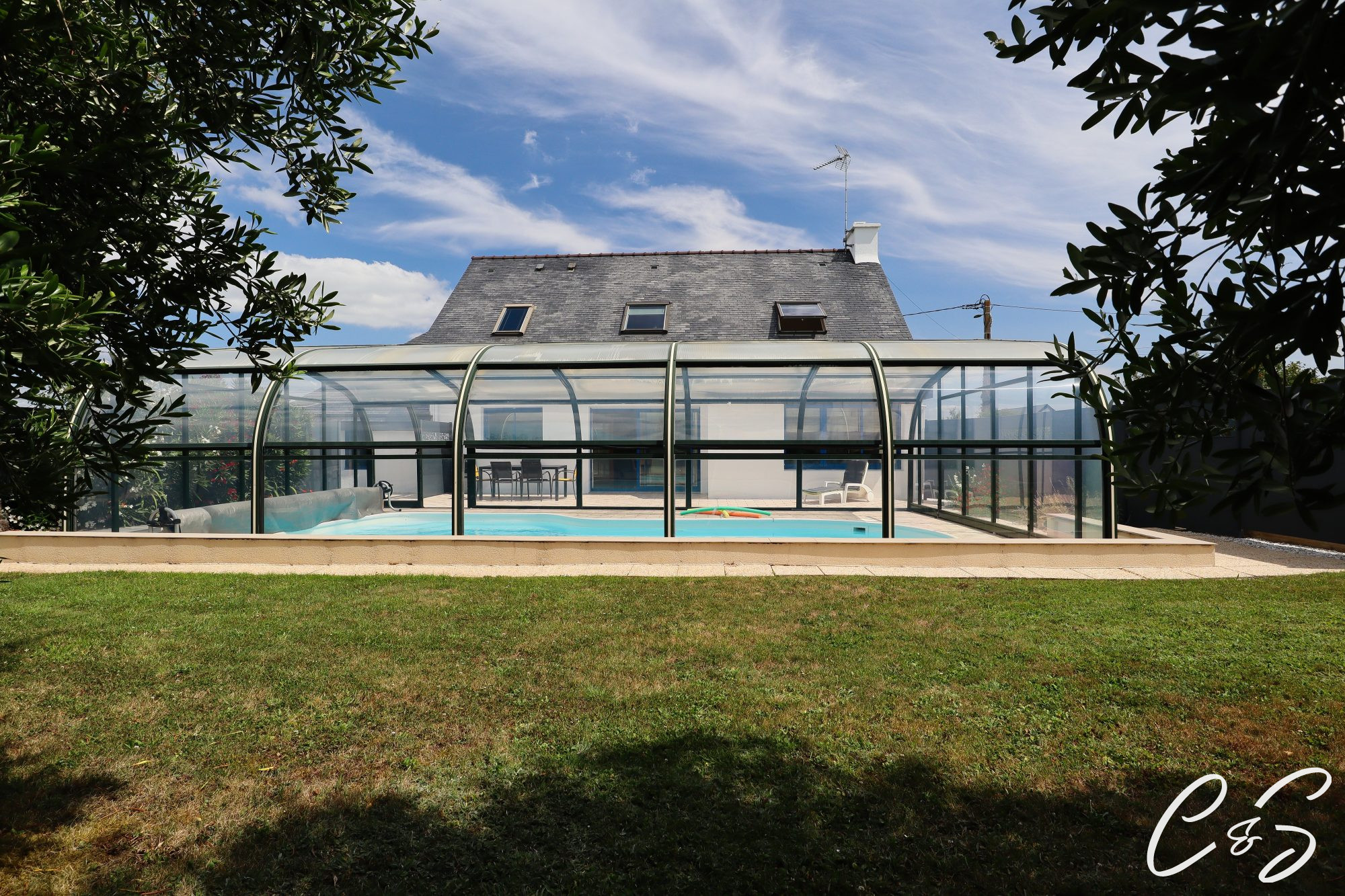 LONGERE DE CHARME EN CAMPAGNE - Située à Kernouës (29260), cette propriété offre un cadre paisible et verdoyant, typique de la campagne bretonne. La commune est réputée pour sa tranquillité, ses paysages préservés et sa proximité avec la mer (10 minutes), offrant ainsi un cadre de vie idéal pour les amoureux de la nature. La maison principale, d'une surface habitable de 103m², à laquelle s'ajoute une magnifique véranda de 38m² s'ouvrant sur le jardin, a fait l'objet d'une rénovation complète en 2006. En annexe, l'ancienne crêperie de 123m² pouvant faire l'objet d'une nouvelle activité professionnelle ou pouvant également être transformée en habitation. L'ensemble est implanté sur un vaste terrain de 6356m² composé d'un grand parking, d'un jardin, de prairies traversées par un ruisseau. La cadre est idyllique ! possibilité de visite virtuelle sur demande.