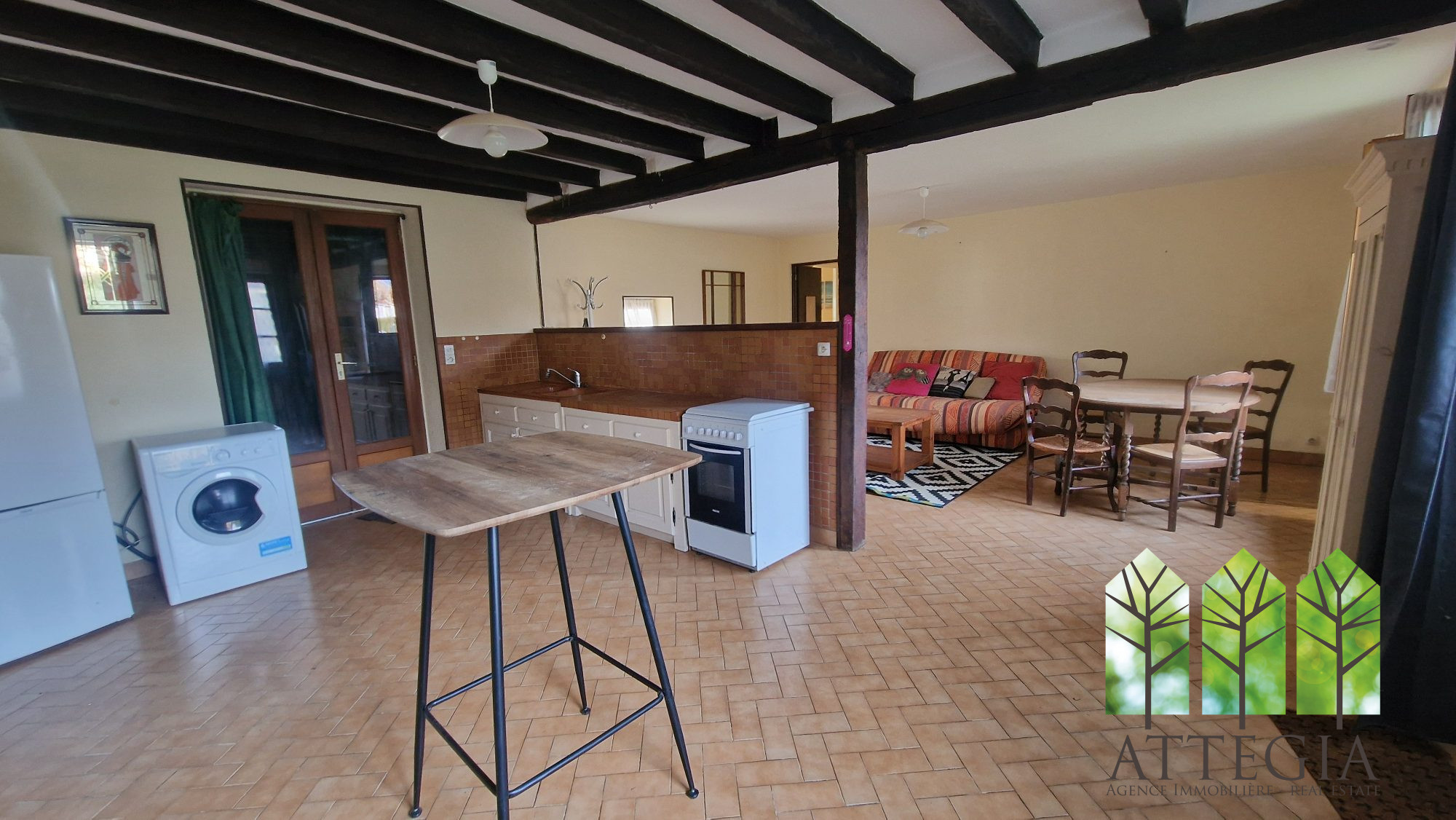 Charmante longère de village, elle se compose au RDC d'un belle pièce de vie avec sa cheminée semi ouverte sur la cuisine, 2 chambres, salle d'eau, WC à l'étage pièce palière pouvant faire office de bureau et chambre d'enfant. Une pièce supplémentaire au grenier peut être aménagée. Accès au garage par la maison, petit jardin sur l'arrière. La maison à bénéficiée d'une rénovation, peinture à revoir suivant vos gouts.