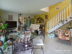 La maison est édifiée sur un terrain de 953 m2, propice au calme et à la détente, avec une partie engazonnée et une partie aménagée en enrobé facilitant les stationnements. Un double garage indépendant, constitue un véritable atout, notamment pour un artisan ou pour le stockage de matériel. Un portail électrique et un interphone complètent cet ensemble pratique et sécurisé.