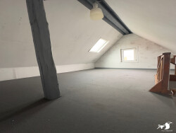 Maison 2 (145 M2) : entrée, pièce de vie, cuisine, buanderie, salle eau, WC, 3 chambres, une pièce bureau, un grenier de 20 m2 et une cave. Un petit carré de jardin.