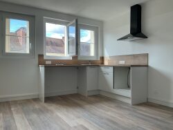 Louviers centre, très bel appartement de 35 m² jamais occupé, refait à neuf situé au 3 ème étage de la résidence jamais occupé : Entrée, wc, cuisine aménagée et équipée d'une plaque de cuisson et hotte aspirante ouverte sur le séjour, une chambre avec rangements, salle de douche et wc.