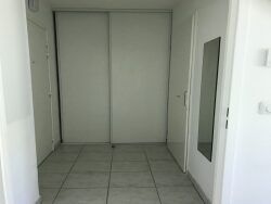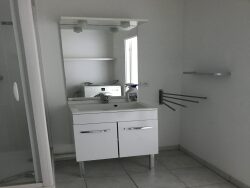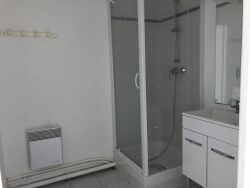 LOUVIERS dans belle résidence avec ascenseur, f1 de 31 m² avec place de parking privative : entrée avec placard, cuisine aménagée équipée d'une plaque de cuisson et hotte aspirante ouvert sur séjour, salle de douche avec wc.