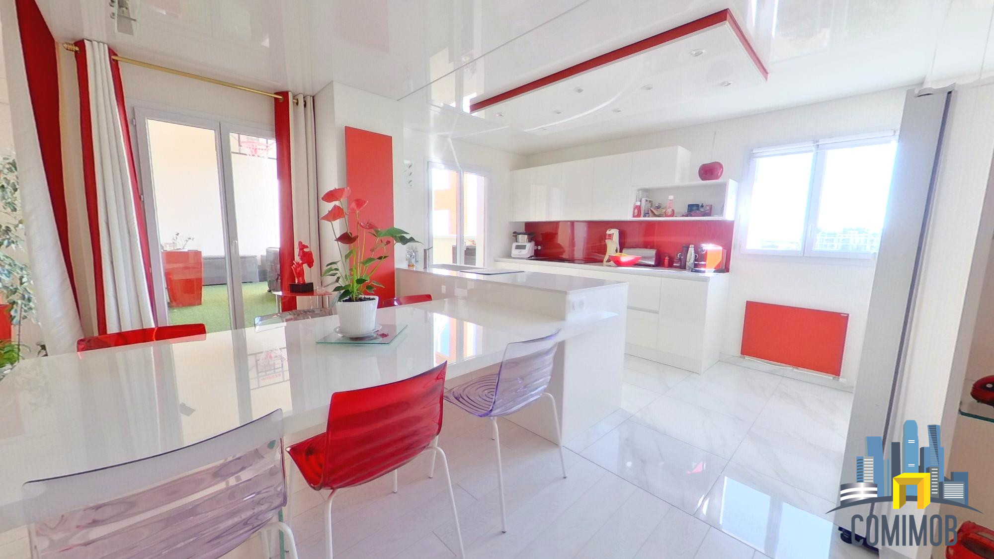 - une cuisine séparée de 6,6 m² entièrement équipée (four, plaques à induction et lave-vaisselle) pouvant être ouverte pour un espace de vie fluide ;