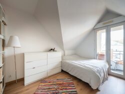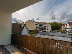 À l'étage, l'espace nuit propose deux chambres de 11 m² et 12 m², une salle de bains et un second WC indépendant. Chaque niveau bénéficie d'un balcon, offrant un véritable prolongement extérieur et une belle luminosité tout au long de la journée. L'appartement dispose également d'une place de parking extérieure et d'une cave en sous-sol, pour un confort au quotidien.