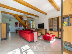 Située dans un écrin de verdure, au calme absolu et sans vis-à-vis, dans la campagne de Luynes à 1km du centre du village, à 5 km du centre-ville d'Aix-en-Provence, cette propriété mêle authenticité et charme de l'ancien. Implantée sur un terrain de 1 640 m2, elle comprend une bâtisse d'environ 180 m2, une piscine, un garage ainsi que des annexes. Le terrain, par sa taille et son emplacement, offre une profondeur et un confort exceptionnels : un véritable havre de paix, tout en étant proche de toutes les commodités. Elle se compose, au rez-de-chaussée, d'une grande pièce de vie de 47 m2, d'une cuisine indépendante, de 4 chambres, d'une salle de bains, d'une salle d'eau, d'un WC indépendant, ainsi que d'une chaufferie. À l'étage, vous trouverez 2 grandes chambres ainsi qu'un WC indépendant. Un garage et 3 dépendances viennent compléter ce bien. Prestations : double vitrage, pompe à chaleur, borne de recharge électrique. La propriété bénéficie également de l'eau de ville, de l'eau d'arrosage du canal de Provence, ainsi que d'une fosse septique conforme aux normes en vigueur. À proximité immédiate des écoles, collège, lycée, commerces, de l'IBS et des transports en commun, cette maison constitue un véritable havre de paix, idéal pour une vie de famille à quelques minutes seulement d'Aix-en-Provence. Taxe foncière : 2 442 EUR Exposition : Sud Pour tout renseignement complémentaire, contactez dès à présent CIABAUD Immobilier Luynes au 04 42 53 35 13. CIABAUD IMMOBILIER, agence spécialisée dans la transaction, la location et la gestion locative.