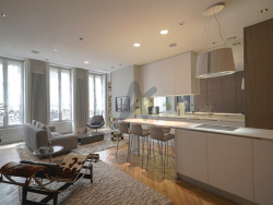 SOUS OFFRE - Lyon 2 ème, Coup de Coeur - Cordeliers, plein coeur de la Presqu'île, dans une rue calme et au sein d'un petit immeuble ancien, avec ascenseur, ravissant appartement de 78 m2, entièrement repensé et décoré par un architecte de renom. Vous serez séduits par ce logement cossu, qui offre de très belles prestations (Corian, cuisine, meubles et habillage des cloisons sur mesure, mur végétalisé, enceintes Bose intégrées, éclairages réglables, leds, cheminée à l'éthanol, connection fibre et nombreuses prises RJ 45..). Une entrée dessert un espace bureau, un vaste séjour avec une cuisine ouverte toute équipée. Une suite avec chambre, dressing, salle d'eau. Nombreux rangements. Un lit 140 cm astucieusement dissimulé dans la pièce principale, offre une second couchage. Une cave complète l'ensemble. Petite copropriété de 5 lots. Charges annuelles d'un montant de 2100 EUR. Honoraires charge vendeur. DPE : C et C. Arlim Presqu'île, JF Moustelou 06 95 35 36 36