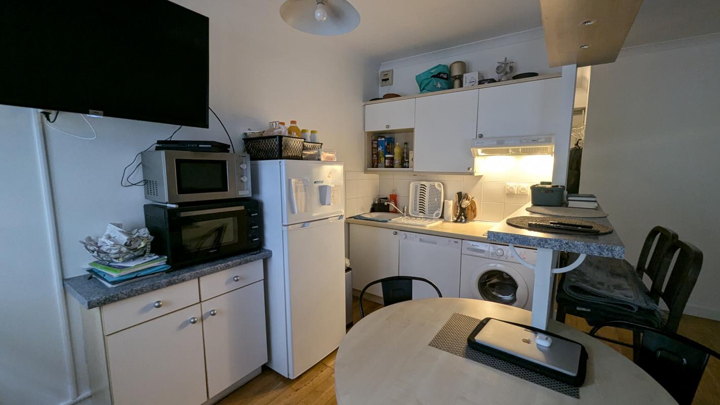 Vous pourrez également profiter d'une petite cour où il est possible d'installer une table et des chaises. Emplacement idéal, proche de toutes commodités, vous serez séduit par le cachet et le confort de cet appartement. Charges : environ 60 /mois Taxe foncière : 414 /an Stationnement vélo possible