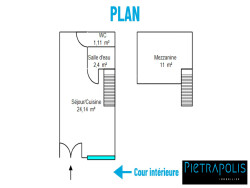 Il se compose d'une agréable pièce de vie avec cuisine aménagée et équipée, d'une salle d'eau, d'un WC indépendant, ainsi que d'une mezzanine avec rangements (hauteur 1,80 m).