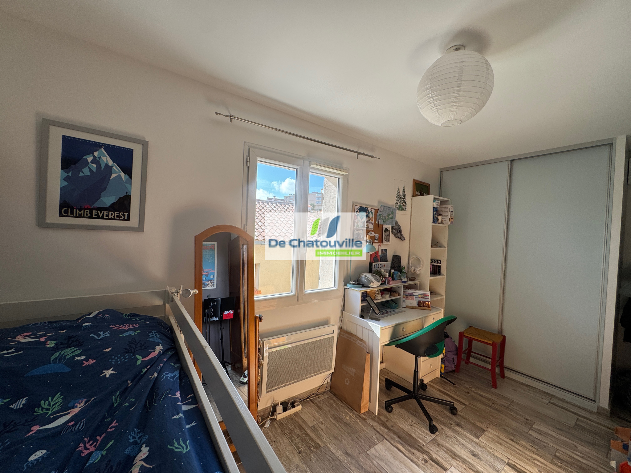 Au rez-de-chaussée se trouvent une troisième chambre ainsi qu'un grand espace modulable pouvant être aménagé selon vos besoins, par exemple en bureau, salle de jeux, atelier ou studio indépendant. Une seconde salle de bains avec WC, un garage et un grand cabanon situé au fond du jardin complètent l'ensemble.