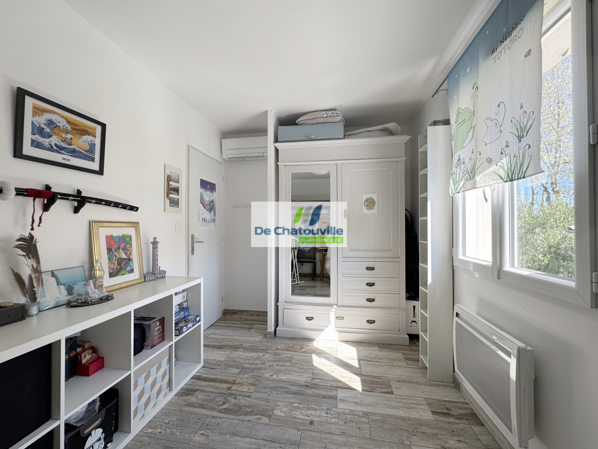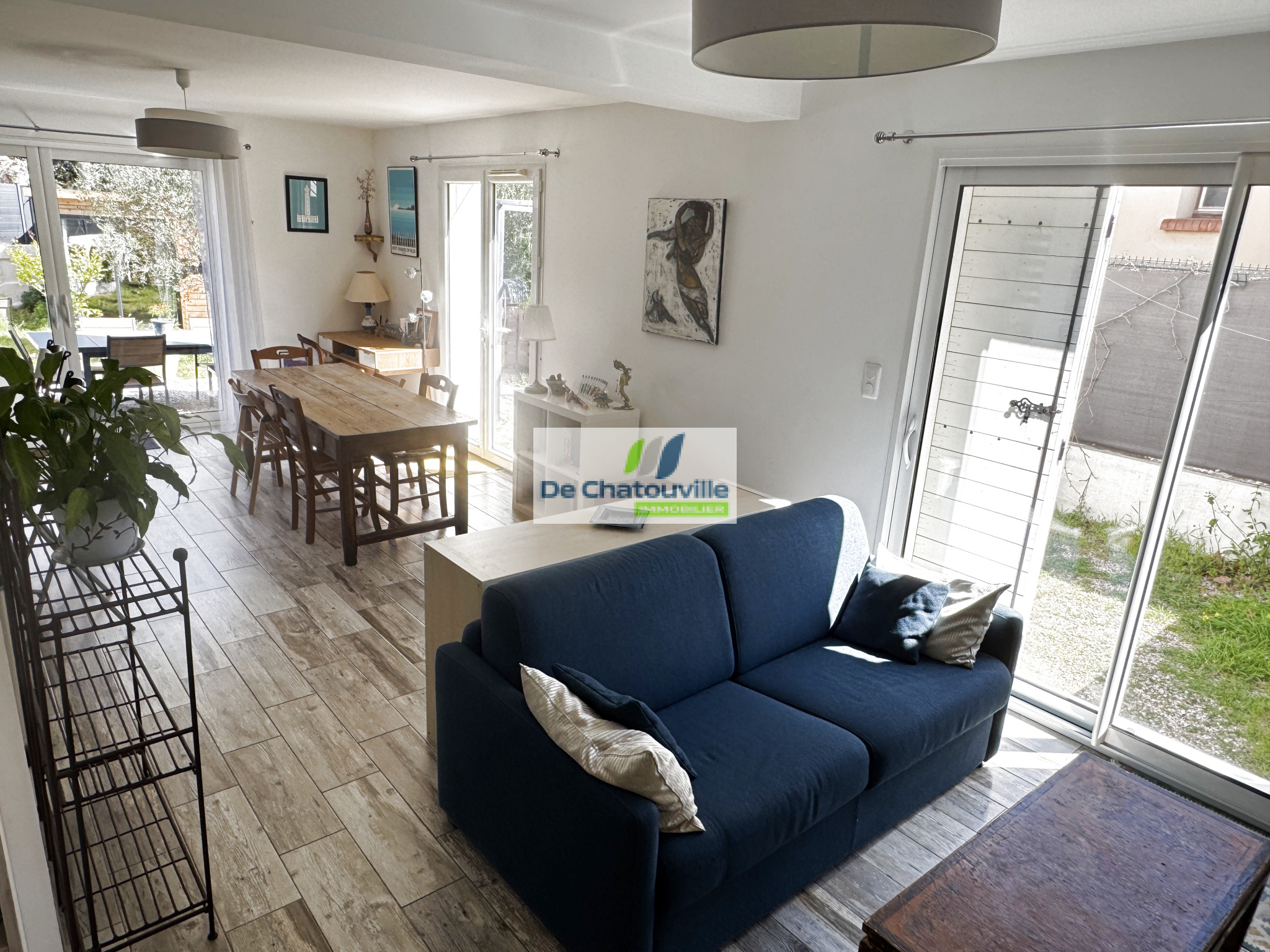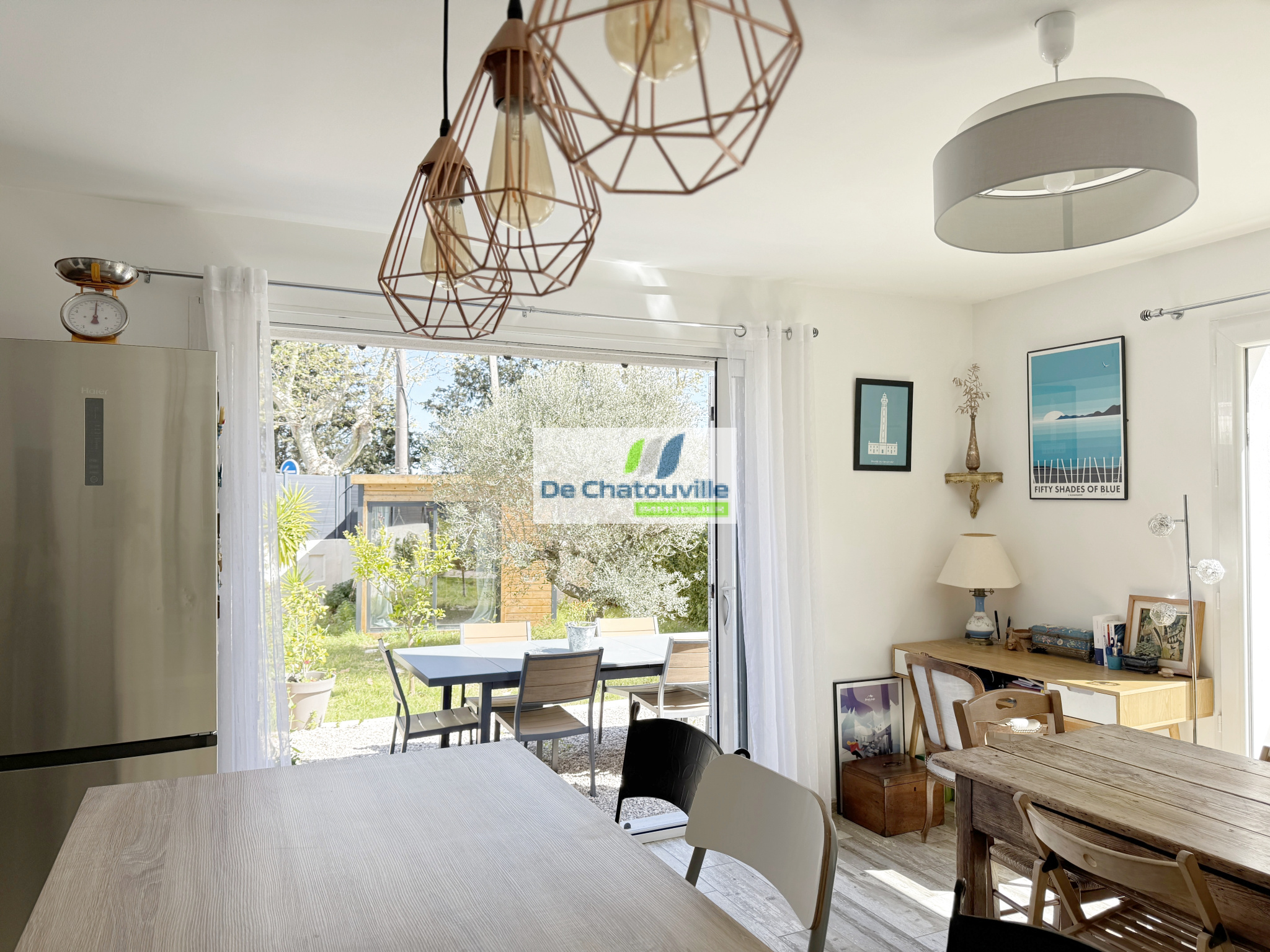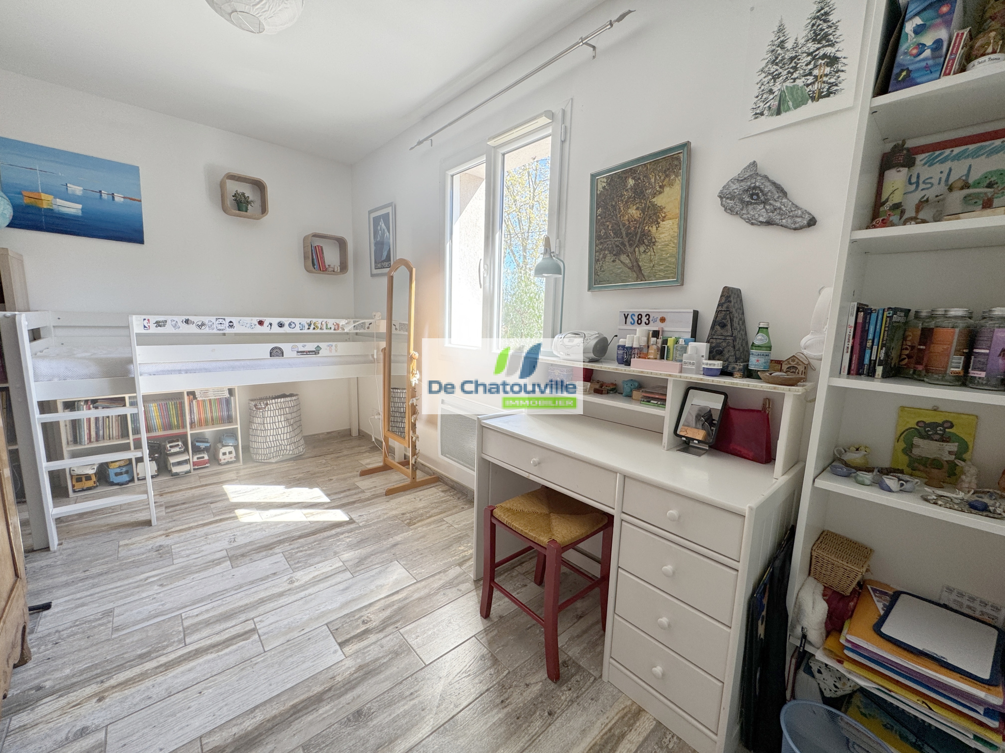 Au rez-de-chaussée se trouvent une troisième chambre ainsi qu'un grand espace modulable pouvant être aménagé selon vos besoins, par exemple en bureau, salle de jeux, atelier ou studio indépendant. Une seconde salle de bains avec WC, un garage et un grand cabanon situé au fond du jardin complètent l'ensemble.