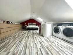 Magnifique appartement de 125 m2 sur deux niveaux situé au calme, offrant une grande pièce de vie de 70 m2 avec de grandes ouvertures doubles vitrage et accès balcon, cuisine américaine équipée, 2 chambres, une salle de douche avec toilettes, à l'étage grande suite parentale avec salle de bains en angle et toilettes. A proximité du Lycée international à 5 min à pieds, écoles, commerces, gares. Tramway ligne 13 express à proximité. A 13/A14 de la forêt et du golf.