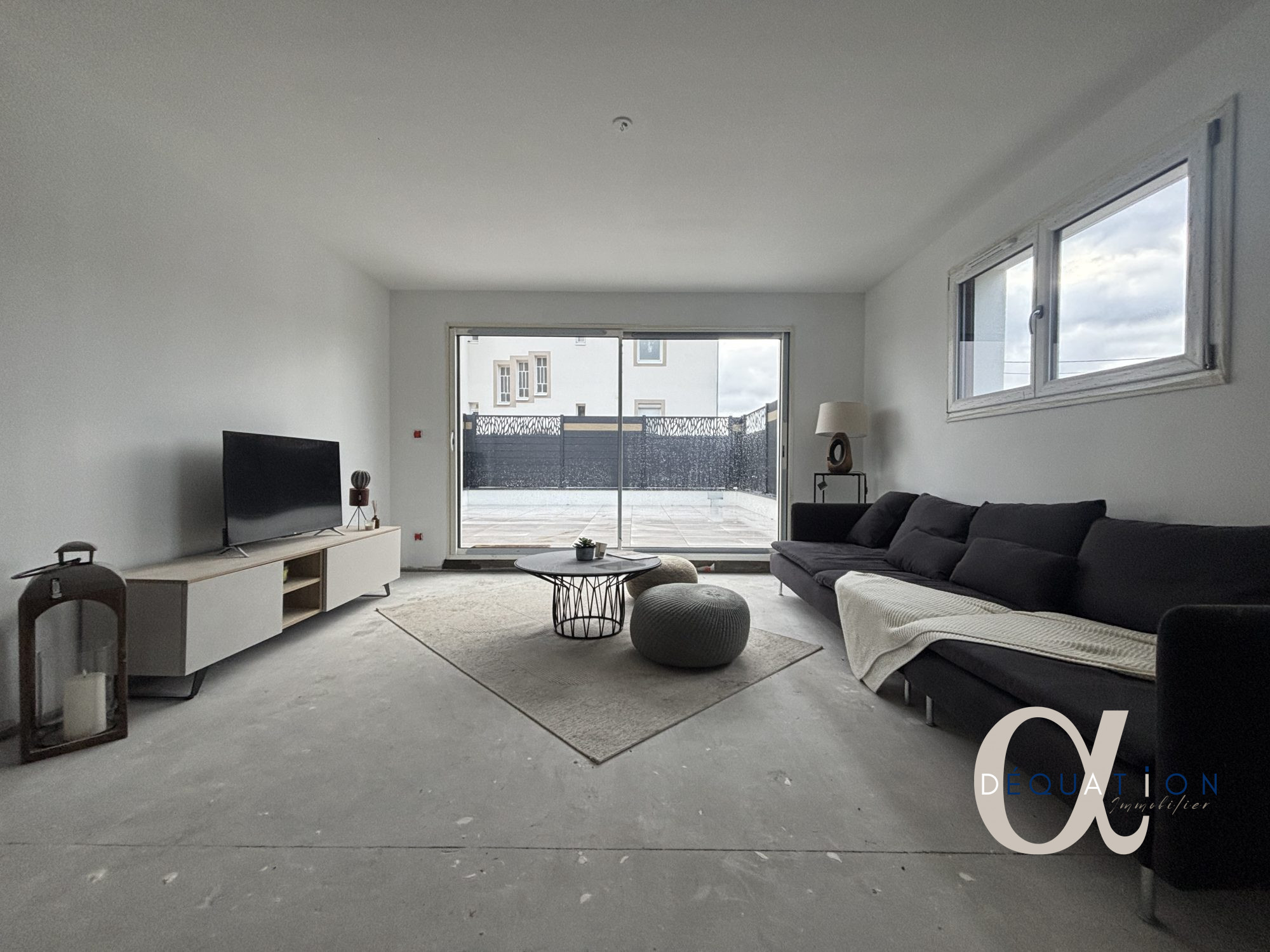 Une entrée avec placard intégré Un vaste séjour/cuisine de 44 m2, lumineux, avec accès direct à une terrasse de 22 m2 et au jardin privatif de 58 m2