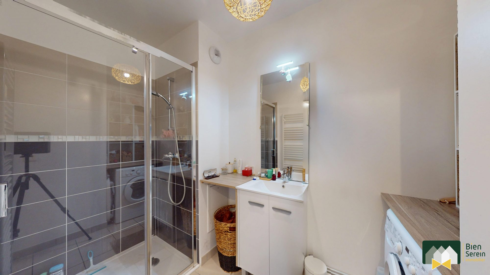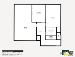 - 1 entrée avec des rangements, - 1 WC indépendant, - 1 Salle d'eau, - 2 Chambres, - 1 Cuisine ouverte aménagée et équipée, - 1 Séjour spacieux et lumineux,