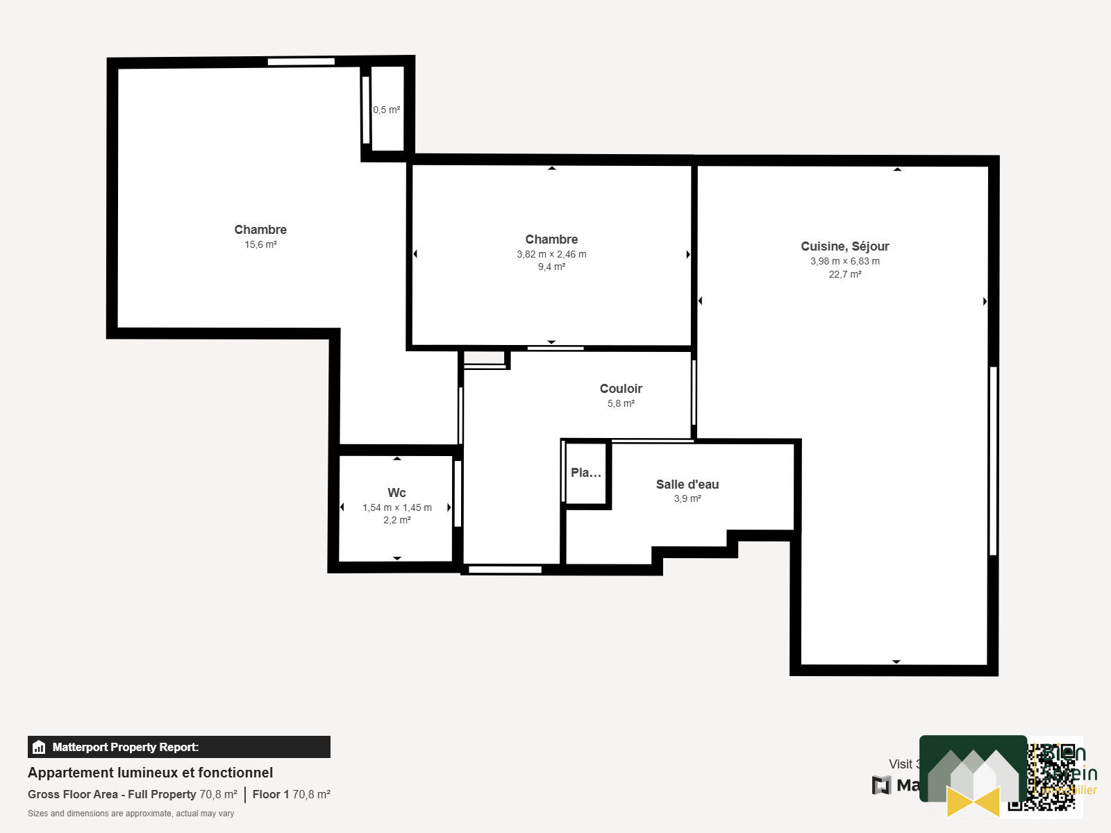 Découvrez un appartement décomposé comme suit :